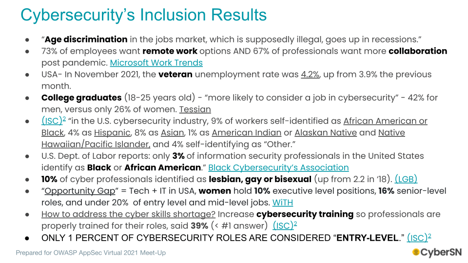 Research findings about the state of inclusion in cybersecurity in 2021. #DEI